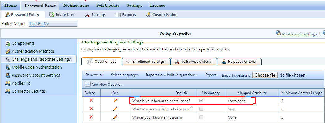 Auto Enrollment is nothing but configure Self Service Policy to skip the enrollment process. For Challenge and Authentication (Q & A) method, admin can map the Questions with AD user attribute as answer, so that user’s not needed to enroll. When a user reset password or unlock account, the answer of challenged question will be compared with mapped user’s AD attribute value to authenticate the user.